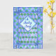 A pretty congratulatons card for a baby boy with a patchwork quilt-like design in blue, lilac and green, handpainted by Judy Adamson. The inside greeting, which you can customise, is 'Congratulations!'.