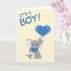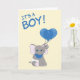 It's A Boy! New baby congratulations celebration card, featuring a cute hand-drawn elephant holding blue balloons.
