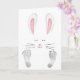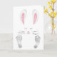 Cute bunny face with pink ears and floral bouquet with newborn baby footprints for new Baby Girl.