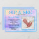 This new baby "SIP & SEE" party invitation features pastel watercolor blue, purple, pink, and yellow. You can also replace the template baby feet photograph with a photograph of your baby or leave it as is. Fill in the personal information template fields, remove text and/or click customise to select a typeface colour, size, and style your prefer.