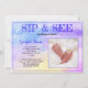 This new baby "SIP & SEE" party invitation features colourful purple, blue, yellow, and pink pastels. You can also replace the template baby feet photograph with your baby's photograph or leave it as is. A square replacement photo works best. Personalise the template fields, remove text and/or click customise to select a typeface colour, size, and style your prefer.
