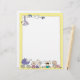 This letterhead features several babies and a stroller at the bottom, a stork delivering a baby in the top left corner and a yellow border.