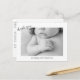 Modern New Baby Birth Photo Thank You Postcard. Two Sided. Message on the back. Birth information on the back. Black and White filter applied to photo.