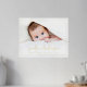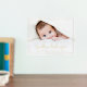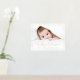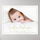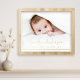 Photo poster with your baby's name, date of birth, weight and length in bold gold or silver foil letters.