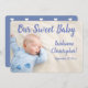 A New Baby Photo Announcement Card designed with your favorite image and the baby's name. To personalize simply insert your image into our template, replacing the sample and click: FILL to cover the front. Next, insert your new-birth announcement details using our template to replace the sample text. Friends and family will love receiving this card and their new keepsake picture!