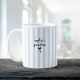 Delight the new grandma in your life with this custom striped coffee mug featuring "[Baby Name]'s Grandma" in playful script above a sweet black bow. The fresh light blue and white stripes give it a modern, cheerful look that's perfect for morning coffee or tea. A thoughtful 'promoted to grandma' gift when a new grandchild arrives.