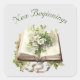 "Celebrate life's milestone moments with our 'New Beginning' Square Stickers featuring a beautifully illustrated open book adorned with lush floral designs. This Stickers embodies the essence of new chapters and fresh starts, making it perfect for weddings, anniversaries, or any special occasion that marks a new beginning. The editable template allows you to customize the text and add personal touches, ensuring your celebration is truly one of a kind. Adorn your favorite Present in this elegant Stickers to create a memorable keepsake that guests will cherish