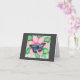 Note card with blue butterfly design done in polycolor pencil and graphite and an inspirational verse.