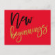 Give someone a boost and send them a postcard with an uplifting message. This has the words New Beginnings in gold and black typography against a red background which can be changed to a different colour if you so wish.