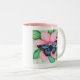 Two-tone mug with blue butterfly design done in polycolor pencil and graphite and an inspirational verse.