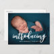 lettering script photo new born baby birth announcement card with baby girl theme, personalized photo card. The text and colours can be edited.