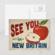 A charming New Britain Connecticut vintage travel postcard featuring a lovely red apple, along with fun retro style text that says, "See you in New Britain"