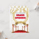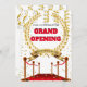 The perfect way to announce the grand opening of your new business with this illustration featuring a gold laurel wreath framing a black and red template set against a white background. The wreath is framed by vertical hanging faux gold streamers; a red carpet with upright poles connected by red cord and luxurious glitter sequins. Make sure your first impressions are lasting ones with this invitation that is sure to delight customers and guests.