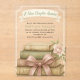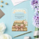 This design features baby shower theme "A New Chapter Awaits" with an illustration of vintage stack of books tied with a pink bow with some pretty roses and flower bunches on a pastel green background. This product can be easily personalised. If you need help with the customisation of the product or need matching products kindly please contact me via Zazzle.