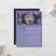 Discover who knows the main character best! This 5x7 baby shower trivia game is part of our 'A New Chapter Begins' collection. Featuring whimsical purple forest illustrations and a vintage ornate border, this card invites guests to answer 12 fun questions about the mommy-to-be. The reverse side features a beautiful hand-drawn illustration of a seedling, making it a lovely memento for the baby book. Perfect for whimsical, storybook, or woodland-themed showers.