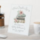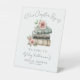 A charming welcome sign for a bridal shower inspired by the “A New Chapter Begins” theme. The design features a watercolor stack of three books in tan, gray, and green hues, accented with delicate wildflowers and greenery in soft blush pink, yellow, blue, and purple for a cheerful and inviting look.