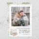 This Married & Merry photo card pairs your favourite wedding or engagement photo with a hand-painted holiday vignette: snowflake pillow, blanket, books, and a warm cup. Finished with the phrase “A New Chapter Begins,” it’s a newlywed Christmas card designed for couples who prefer cosy elegance over glitter and flash.