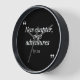 This clock exceeded my expectations for quality at a price that was surprisingly reasonable for a custom made product. The quality of the graphics on the face of the clock are excellent, including the customized personal name. The font color choice for the name turned out exactly as I had hoped for.
