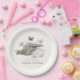 This elegant "a new chapter will begin soon" bridal shower plate features a cream background with a piles of books, butterflies, a flower bouquet, teapot and teacup in watercolor. Personalise it for your needs. You can find matching products at my store.
