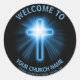 Say welcome with this bold and powerful cross design to welcome new members into your church. The design features a beaming and shining cross on a black background.