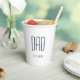 New Dad coffee cup with a simple design. With blue customizable typography lettering, you can add your own text. Great for celebrating the new dad in your life on Father's Day.