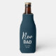 Give a dad to be this New Dad Modern Established Personalised Bottle Cooler. It has a modern typography design with "new dad" in chunky white script and block lettering followed by established year and name. Design is on front of dark blue bottle cooler. Click personalise template option and follow the prompts.