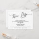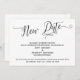 This suite's distinction is due to the elaborate, swirling script font used for accent phrases. In the event that you need to let your guests know that your wedding has been postponed, this card provides an elegant option. In this piece, the calligraphy font was used to create a graphic depicting the words "New Date". Use the template fields to add your personal details and make this design your own. The background can be changed to any colour you prefer. Please reach out with any special requests or for customising assistance. // 98 //