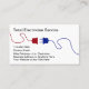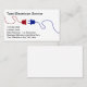 Clean new Electrician business cards in a simple custom layout with red white and blue colour combination for a patriotic American theme with graphic of an electrical cord plug in an editable style for a Licensed Electrician, Electrical Contractor, or services.
