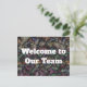 Welcome your newest employees in a memorable way with this "welcome to our team" postcard. The postcard features a colourful swirled pattern on the front that also features a tiled mosaic design. The result is a pattern that looks fabric like or slightly weathered. The back offers additional words of welcome as well as a place for the new employee's start date. There is plenty of room to add your business name, contact information, and/or logo. All text can easily be personalised.