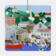 Quaint New England waterfront town. Where else would you find a church steeple and a lobster dock in the same place? It's just charming! This picturesque scene was on the cover of Yankee Magazine years back. The image is on both sides of the ornament. You can remove it from the back if you wish.