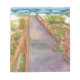 a watercolor painting of a path to the beach with sea roses and sea oats. I painted this picture for my sister who lived in Florida but missed the sea roses smell.