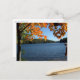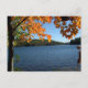 New England fall lake postcards. Pristine Gregg Lake in New Hampshire photographed through the Autumn orange foliage of a maple tree in October.