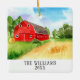 New farm Christmas ornament with an illustration and space to add your family name, year, and a custom message on the back.