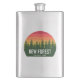 The product is a good size and came exactly as it was pictured. The lid is not attached to the flask, which could be dangerous on drunken nights... The print came out surprisingly well and looks very sharp. Would definitely recommend.