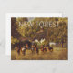 Postcard with photo of New Forest ponies and thatched cottage in painting style from New Forest Pics