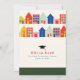 New grad on the block neutral graduation theme featuring illustration on front of traffic light with "thanks for stopping by" text. Back features houses and buildings with name, year, and graduation cap illustration.