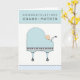 New grandmother congrats card with music-themed design featuring baby grand piano stroller and baby boy.