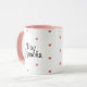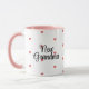 Cute mug with red hearts all-over design. Text fully customizable (also for mom, dad, grandpa, etc.) Perfect gift for the (new) Grandma from her grandchildren, granddaughter or grandson. Coffee, tea mug for the whole family. We love you, Grandma - custom text, change as you want. Also change inside color of mug as it fits. Grandpa version available, too. Designed by Best Baby Gifts - given with love.
