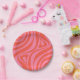 New Groove Retro Abstract Pattern Hot Pink Paper Plate