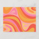 New Groove Retro Abstract Pattern Pink and Orange Postcard