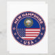 Badge of New Hampshire with flag of New Hampshire and flag of USA colours, rounded shape.