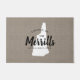 Modern farmhouse personalised doormat with your family name inside your state map. Faux burlap canvas texture background. Click Customise It to add your own text and images and create a unique one of a kind design!