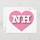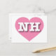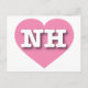 This postcard features a vibrant pink heart containing the bold, white, upper case letters NH, the official abbreviation for New Hampshire, the granite state. The reverse side of the postcard is blank, awaiting your customised text or handwritten sentiments.