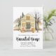Share your new address in seasonal style with this cute and spooky Halloween moving announcement. The design features a watercolor house decorated with jack-o’-lanterns and set against a backdrop of spooky trees. Personalize with your family name and new address for a festive and memorable keepsake. Perfect for letting friends and family know about your move during the Halloween and fall season.