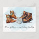 Announce your new hiking buddy with these adventurous pregnancy announcements! This design includes watercolor graphics of hiking boots and can include your custom message on the back.