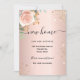 A rose gold faux metallic looking background decorated with rose gold and blush pink watercolored floral, ecalyptus greenery, faux gold botanical sprigs, foliage and golden glitter dust. With the thext: New Home. Personalise and add your new address and name.