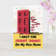 New home and address announcement, paper greeting card. Features a red front door being closed or shut. Has a cute message inside. I shut the front door! On My New Home. Edit the cover text, lower line, and add your new address inside. Art, image, and verse copyright © Shoaff Ballanger Studios, 2024.