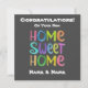Congratulating a couple or individual on their new home with colourful "Home Sweet Home" text. Other text can be easily changed.