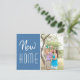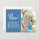 Beautiful family moving announcement with your own personalised photograph. Cute coastal blue with chic white typography for a pretty change of address postcard for your new home.