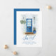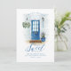 Let your family and friends know that you've moved to your new home with our beautiful and elegant new home announcement card. Our design features our own hand-painted watercolor vibrant cobalt blue farmhouse style front door with glass. Accented with aqua blue siding, black light fixture, burlap welcome doormat, and a natural floral greenery hanging basket, and blue pottery lavender floral planter complete this charming chic country style farmhouse home design. Personalise with your new home address number on the wall and add your name and address information. All illustrations are hand-painted original artwork by Moodthology.